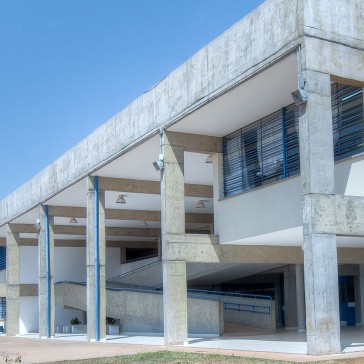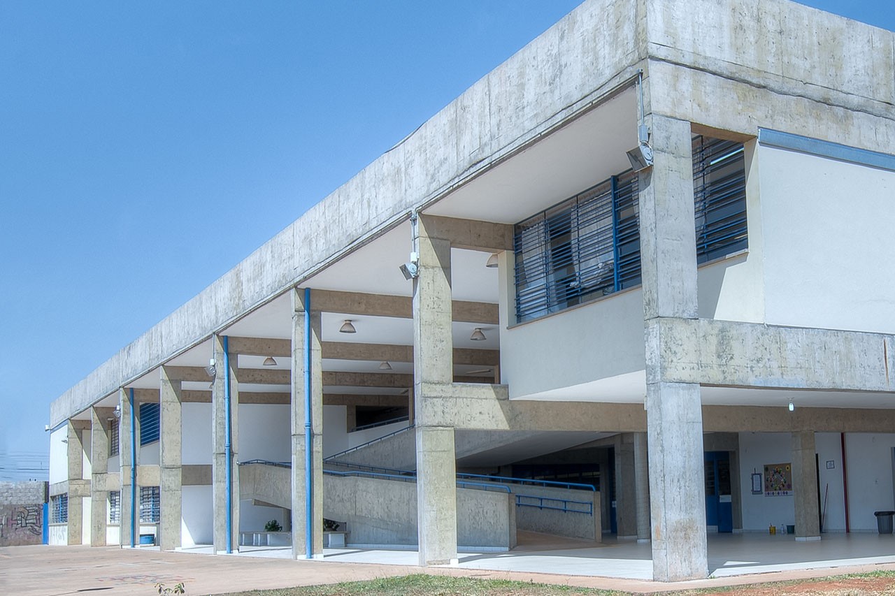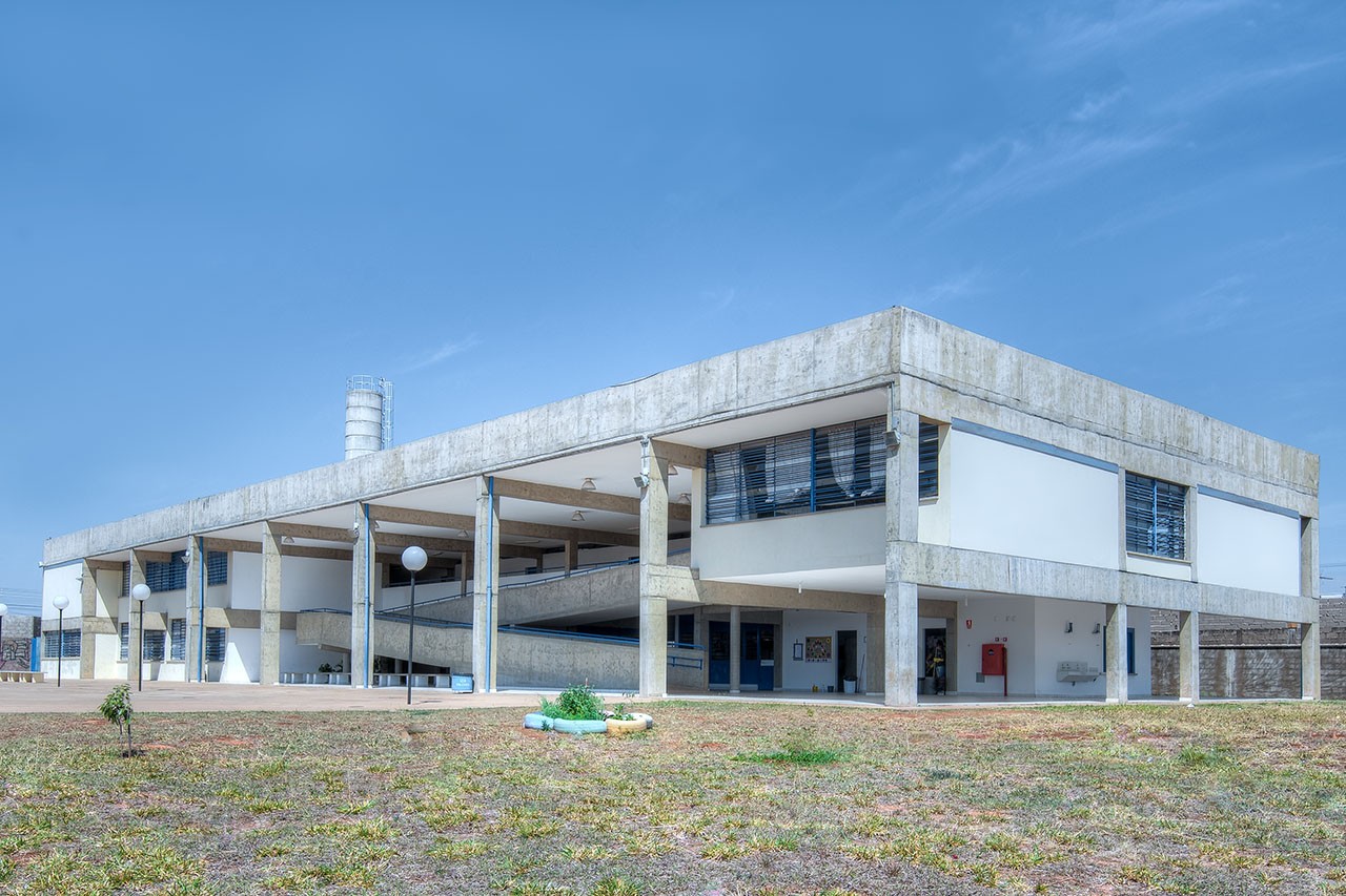 Ana Dorotéia, em Franca-SP, a escola possui estrutura de concreto armado aparente e 2098,71 m², com salas